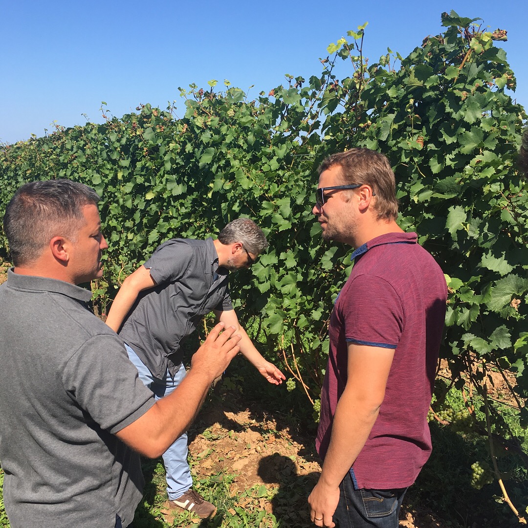Photo: Visiting winemaker Germain Croisille (Vignerons de Nature) chats with Mike Lightfoot from our local biodynamic producer, Lightfoot & Wolfville. You can see my colleague Jason MacLeod checking out the fruit in the background, too.