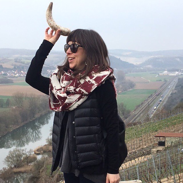 Photo: My colleague Alanna McIntyre checking out the cow horns at Germany’s Weingut Am Stein.